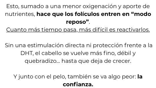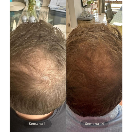 El proceso es progresivo: primero fortalece el cabello y mejora la salud del cuero cabelludo, y luego estimula el crecimiento de nuevos cabellos más fuertes y resistentes.
