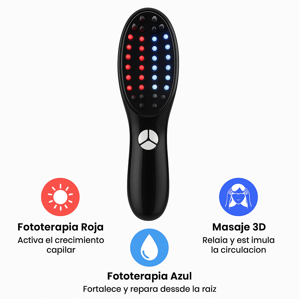 Un cepillo inteligente con fototerapia roja y azul, masaje 3D y nano atomización para cuidar tu cuero cabelludo y mejorar visiblemente la salud capilar.